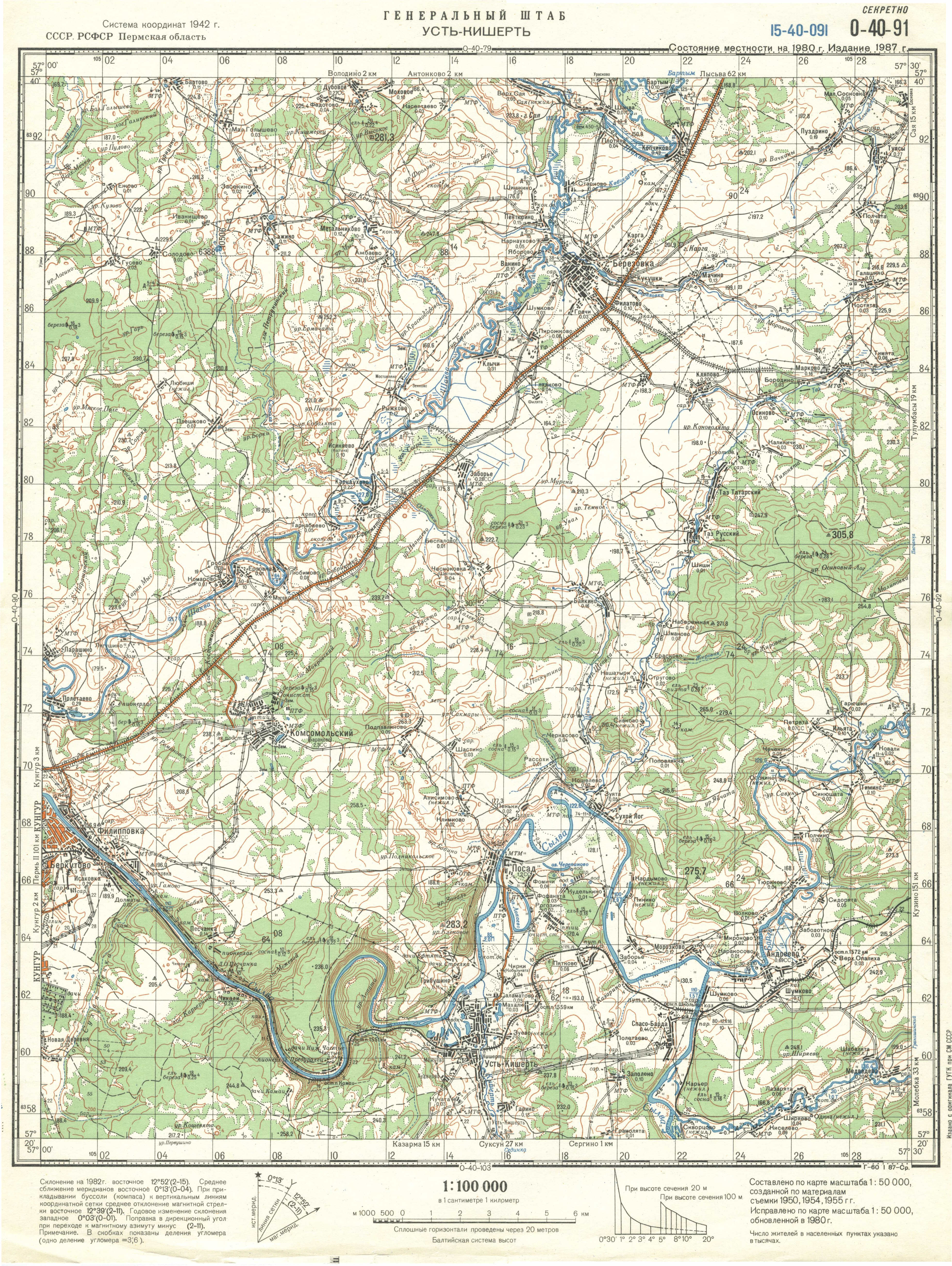 Топокарта района к Ермак и к Лобач, лист O-40-091 (1 : 100 000)