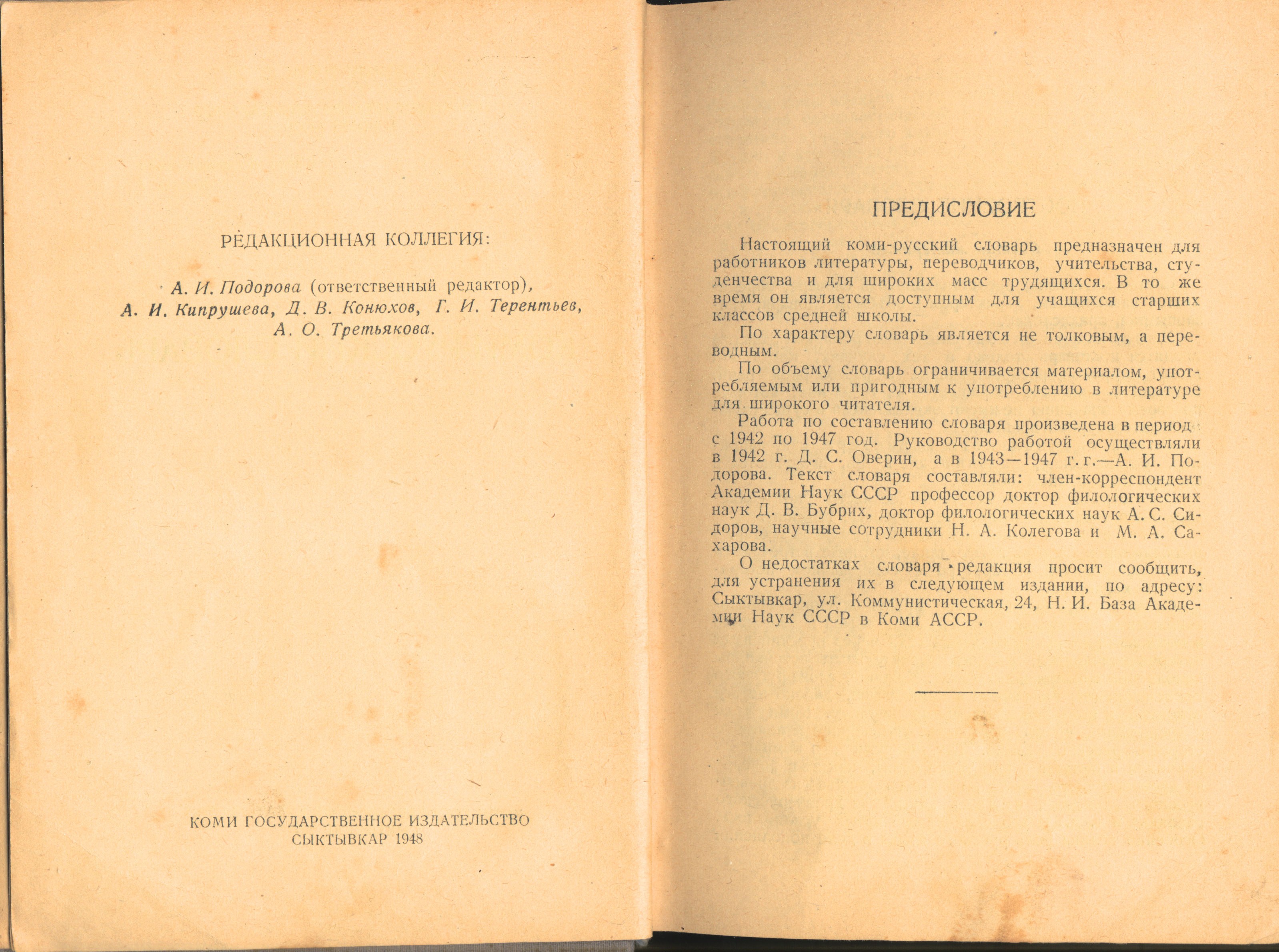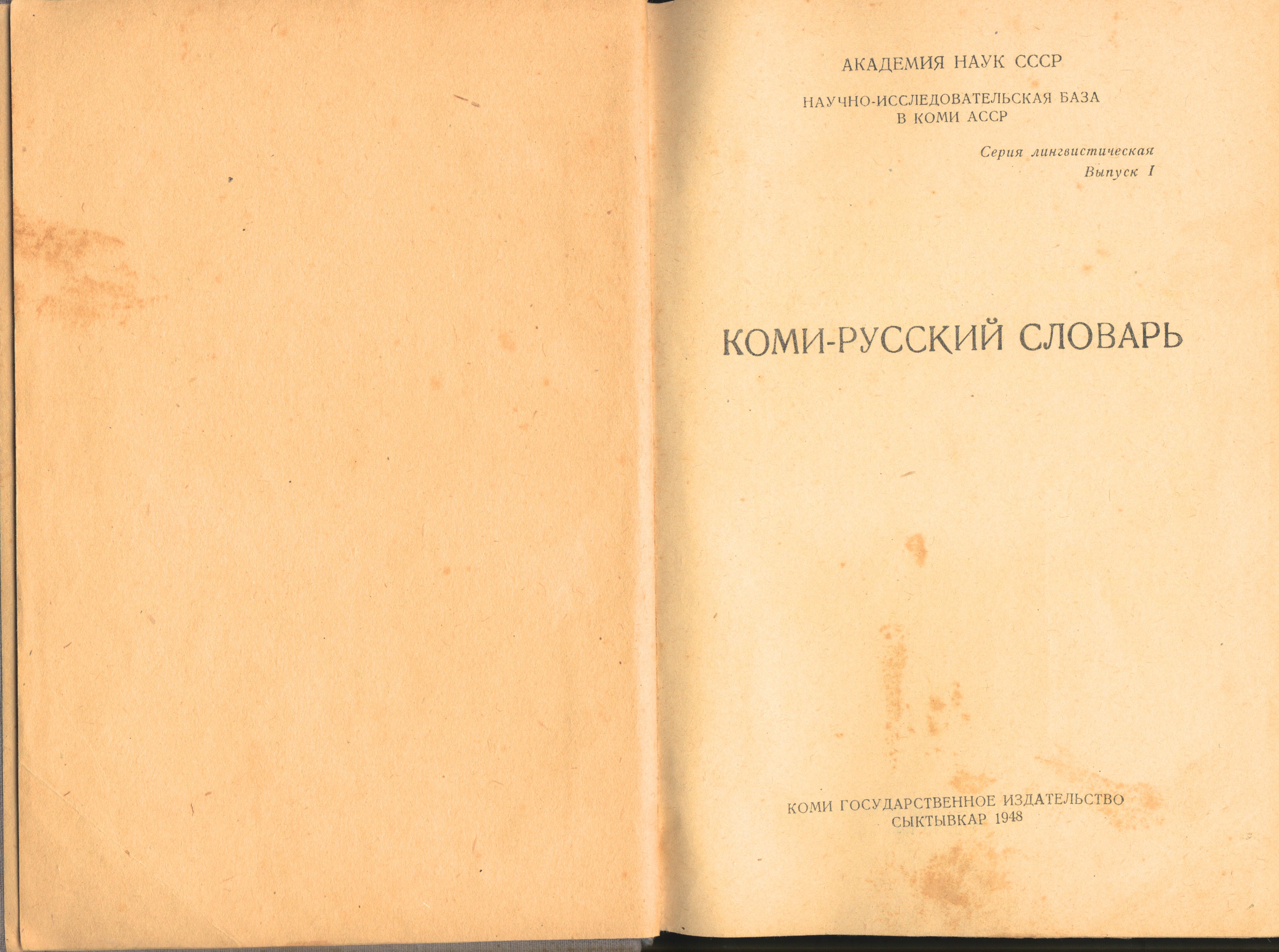 из книги КОМИ-РУССКИЙ СЛОВАРЬ. Сыктывкар, 1948: