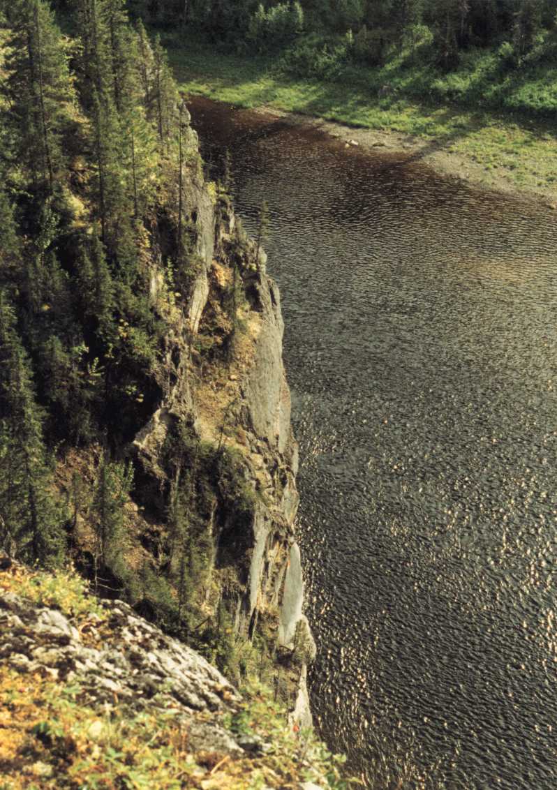 Высота левобережной скалы над рекой H = 55.27м +- 0.05м