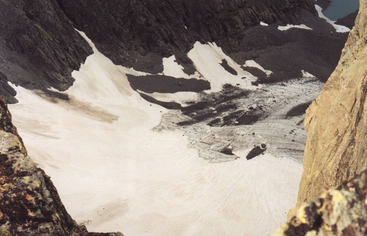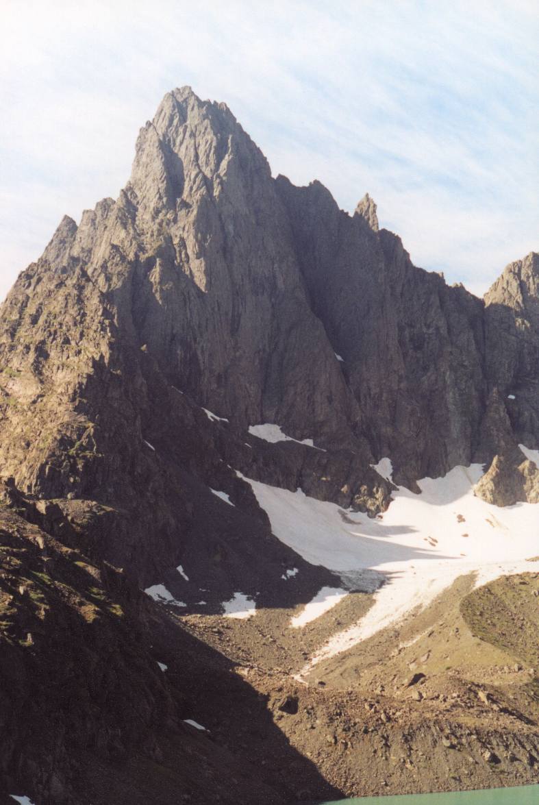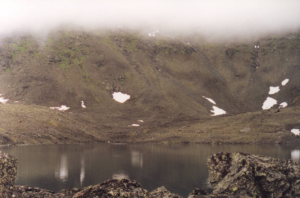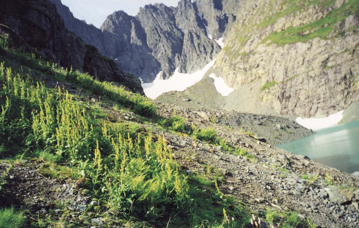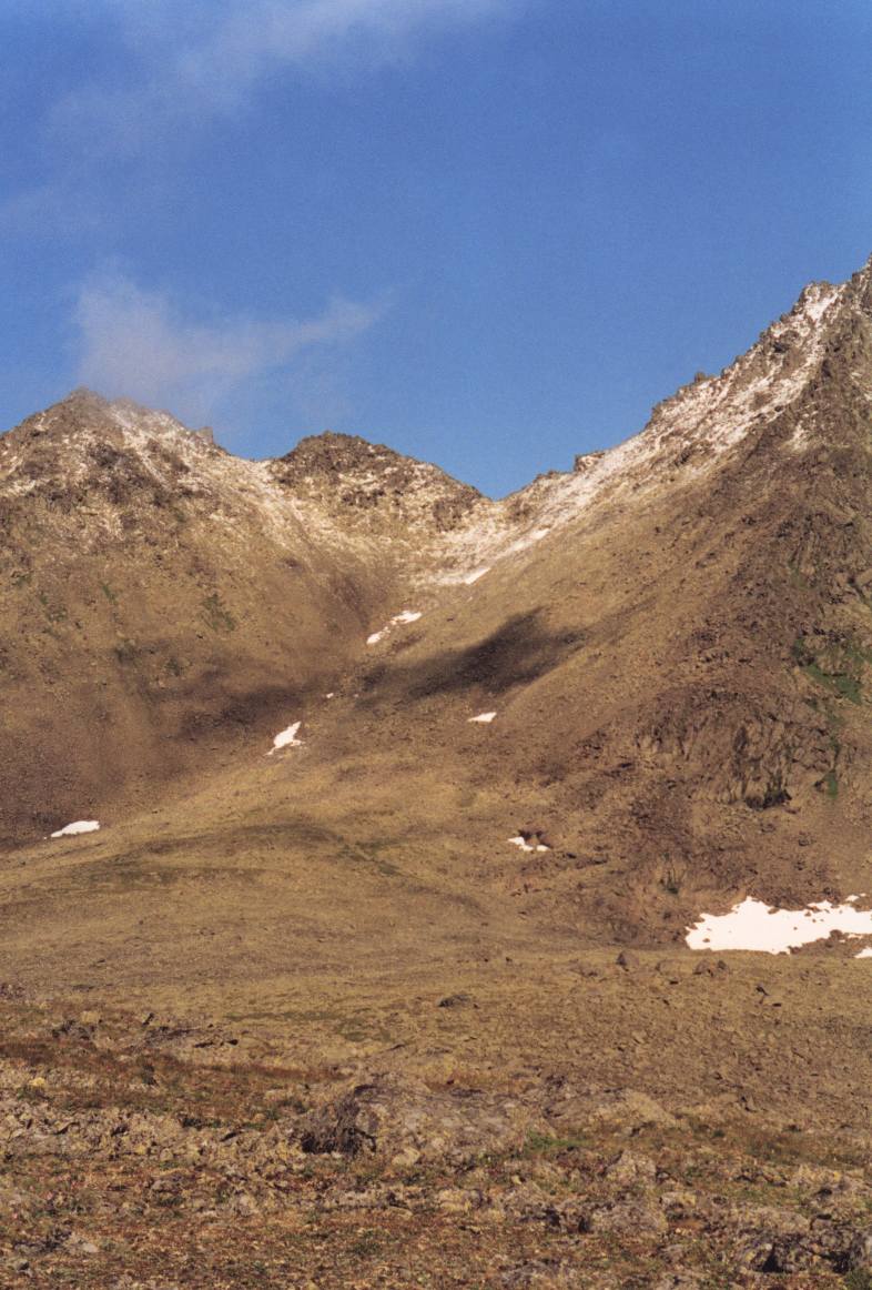 озером (~840м), затем идет ~30гр подъем по осыпной лощине
