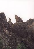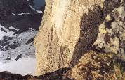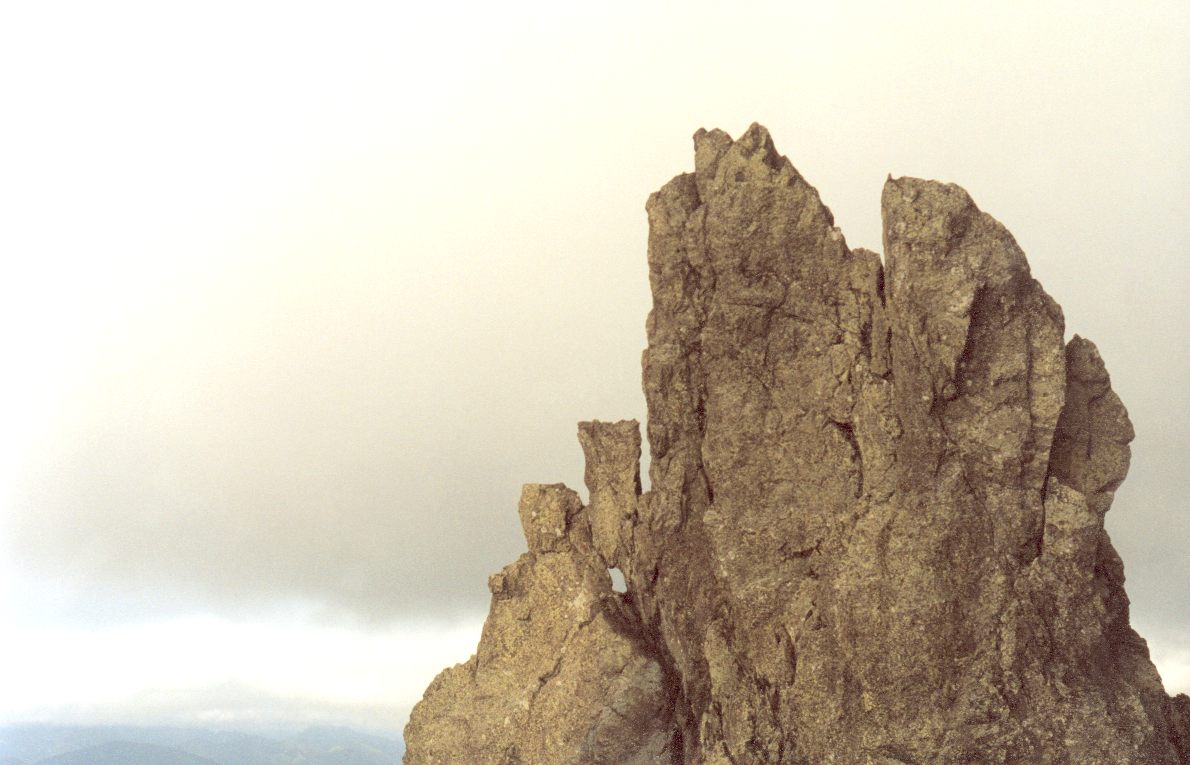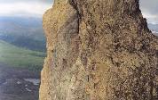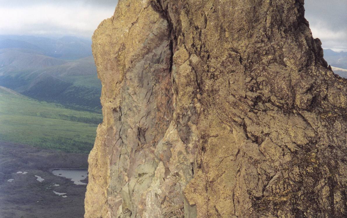 с торчащим светло-желтым каменным ребром-останцем